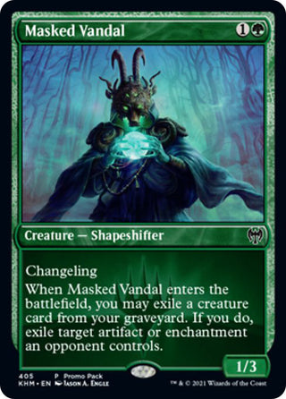 When Masked Vandal enters the battlefield, you may exile a creature card from your graveyard. If you do, exile target artifact or enchantment an opponent controls. |